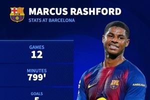 据德国转会市场统计,拉什福德加盟巴萨以来出战12场比赛,出场时间799分钟,打进5球,助攻6次,平均每90分钟参与1.24球。